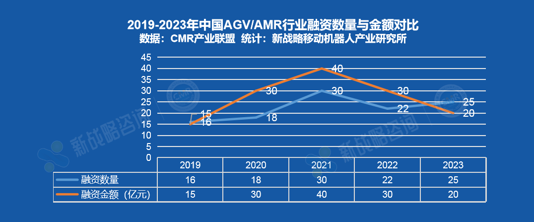 根据CMR产业联盟数据,新战略移动机器人产业研究所统计,2023年,中国AGV/AMR领域共发生25起融资事件,融资总额累计超过20亿元。相较于2022年行业整体融资大幅减少,资本市场渐趋冷淡。