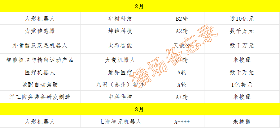 亿级融资包括:国自机器人、星动纪元、北京卓翼智能、仁洁智能、宇树科技、本末科技等12家企业。
