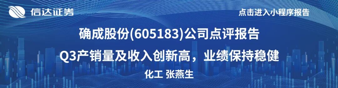 确成股份(605183)公司点评报告:Q3产销量及收入创新高,业绩保持稳健