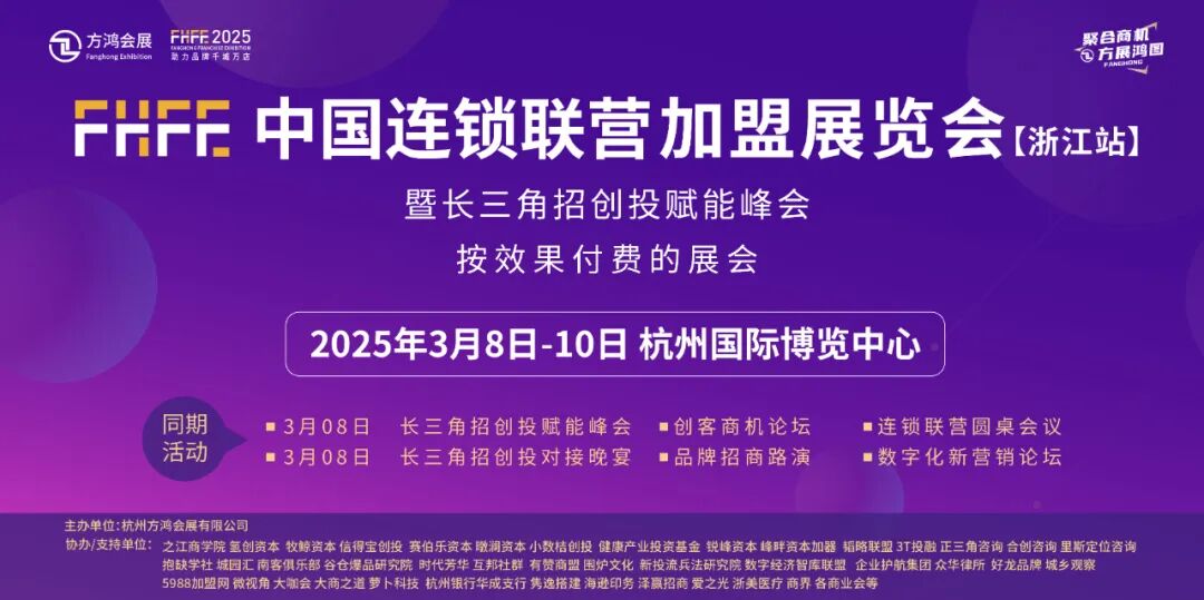 2025年3月8-10日,FHFE中国连锁联营加盟展览会(浙江站)在@杭州国际博览中心盛大开幕!