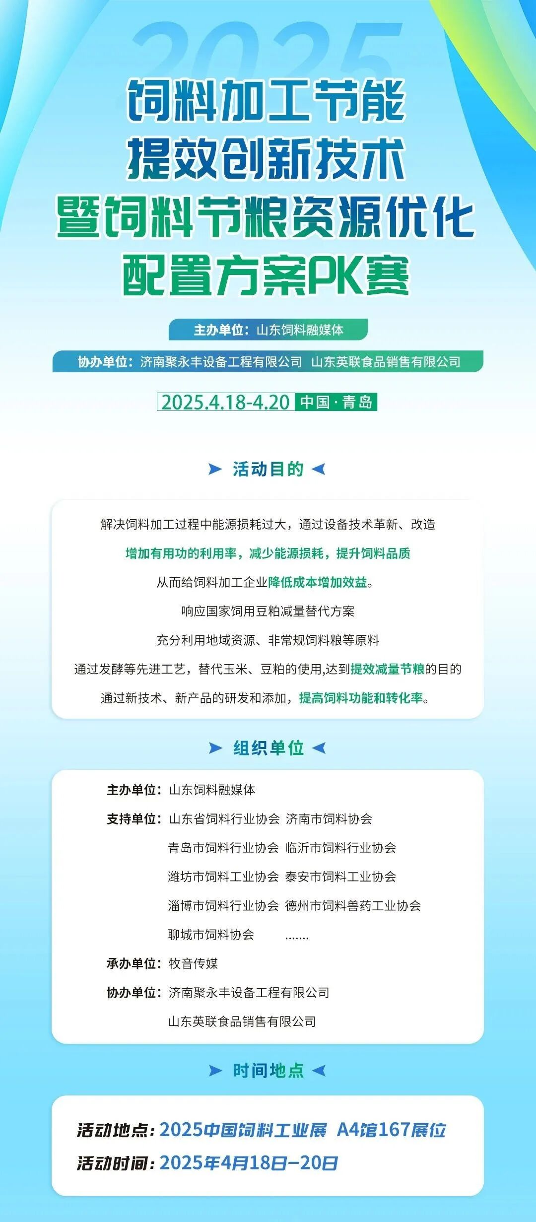 关于在2025中国饲料工业展览会期间举办“饲料加工节能提效创新技术暨饲料节粮资源优化配置方案PK赛”的邀请函