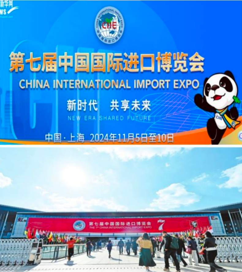 材料一:2024年11月5日上午,第七届中国国际进口博览会(以下简称“进博会”)在上海开幕。本届进博会以“新时代,共享未来”为主题,有152个国家、地区和国际组织参加国家展和企业展,整体展览展示面积将超过42万平方米,参展企业再创历史新高,来自129个国家和地区的3496家展商参加,其中世界500强和行业龙头企业共297家,将展示400多项代表性新产品新技术新服务。