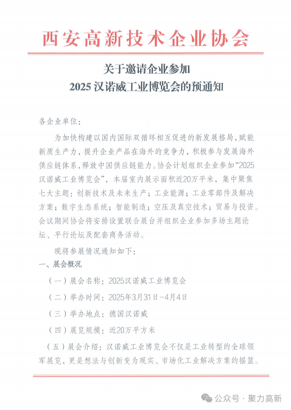 关于邀请企业参加2025汉诺威工业博览会的通知