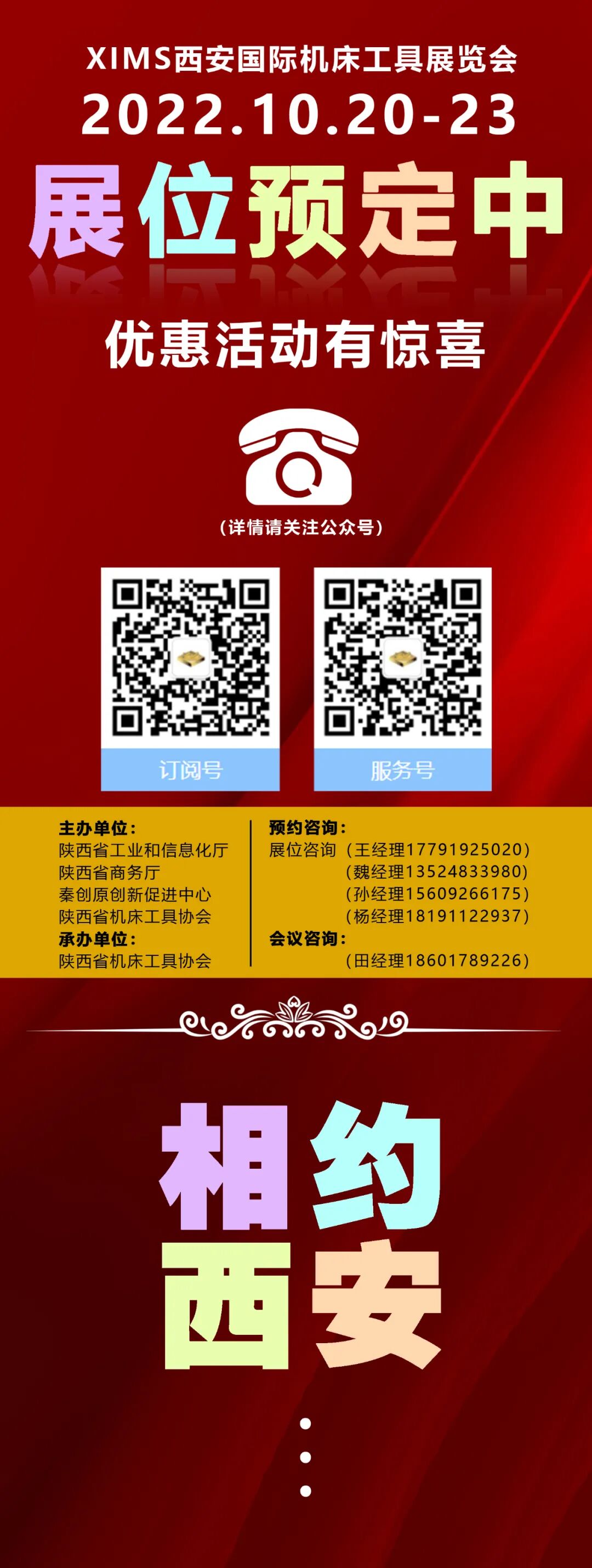 XIMS2022西安国际机床工具展览会以"精准、智造、融合、创新"为主题,为观众呈现代表行业发展的前沿技术和最新发展成果,强调和突出"创新";依托陕西省强大的制造业资源及科教资源优势,集品牌展示、技术交流、贸易合作、宣传推广、国际研讨于一体,为行业上下游用户搭建便捷、高效的交流平台,实现机床企业与用户的融合、主机厂商与部件厂商的融合、产学研用的融合及协同创新,是推动机床工具转型升级的一站式会展平台。