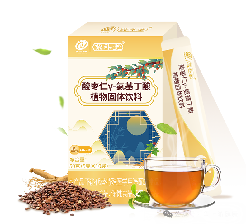 荣补堂酸枣仁γ-氨基丁酸植物固体饮料,是天津科技大学与争上游健康公司深度合作的智慧结晶。它精选优质酸枣仁、人参等纯植物精华,并巧妙融入GABA(γ-氨基丁酸),通过精准的科学配比与尖端工艺精心打造而成。酸枣仁,这一中医传统中的安神瑰宝,其提取物富含的酸枣仁皂苷,具有卓越的安神助眠效果。而GABA(γ-氨基丁酸),这一近年来备受瞩目的神经递质,以其天然的镇静特性,能够有效调节神经元兴奋性,带来身心的深度舒缓。