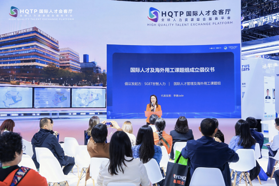 在第七届进博会举办之际,SGET世智人力邀请同行的知名专家学者加入《国际人才及海外用工课题组》。SGET全球合伙人,前亚太及中东非地区(世界500强)HRVP 李婕女士上台宣读“国际人才及海外用工课题组成立倡议书“。