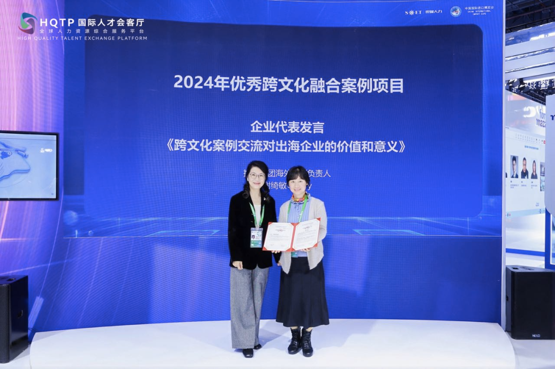 此项目源于SGET世智人力从2024年开始征集中资企业在全球跨文化过程中的优秀案例,众多案例中评选出6个企业及个人获得了“优秀跨文化融合案例”此项殊荣。其中,携程集团海外培训负责人谢绮敏Cherry女士作为代表上台领证,并分享了“跨文化案例交流对出海企业的价值和意义”精彩演讲。