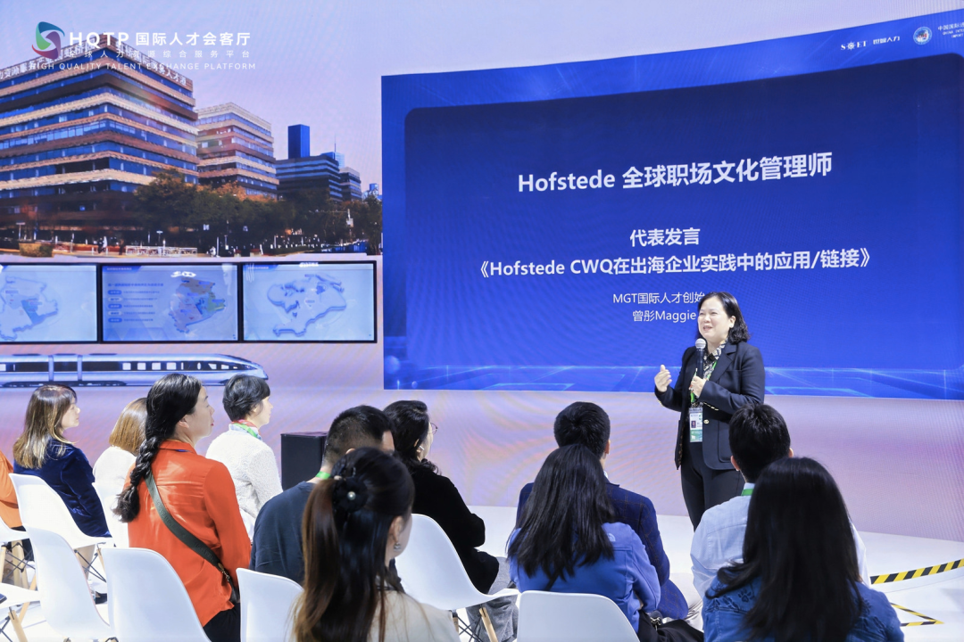 在专题活动中,SGET世智人力国际咨询培训平台(GloTDP)跨文化高级顾问王国红女士,进行了霍夫斯泰德职场文化管理师认证的介绍。刚刚8月份结束的课程获得了众多学员好评。本次,特别邀请这一期学员,MGT国际人才创始人曾彤Maggie作为代表分享了“Hofstede CWQ霍夫斯泰德在出海企业实践中的应用/链接”精彩演讲。