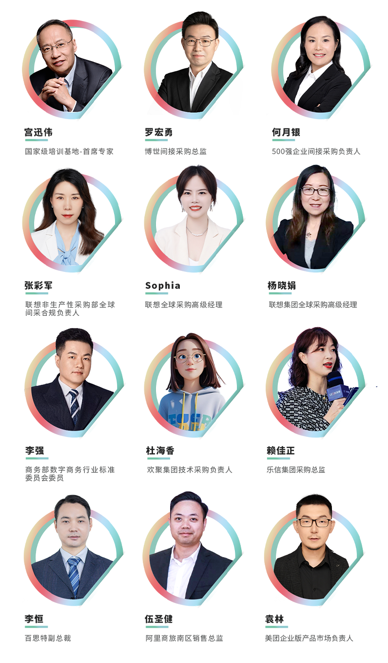 还有博世间接采购总监、500强企业间接采购负责人、商务部数字商务行业标准委员会委员、欢聚集团技术采购负责人、乐信集团采购总监、联想非生产性采购部全球间采合规负责人、联想全球采购高级经理、联想集团全球采购高级经理、百思特副总裁、美团企业版市场负责人及阿里商旅南区总监等20多位演讲嘉宾。