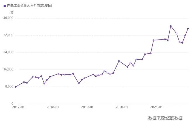 IFR数据显示,2001-2019年中国工业机器人销量复合年均增长率达34.7%。若2022年之后继续维持这一增速,不到3年市场规模就将突破1000亿元。
