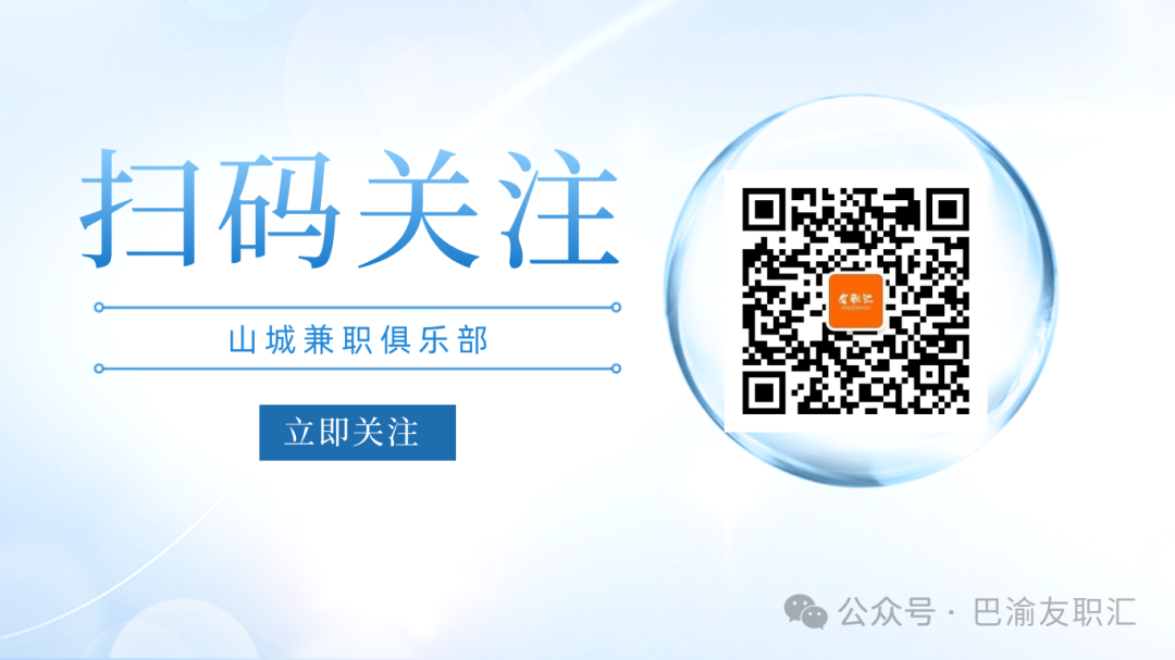 "巴渝友职汇"关注可查看更多优质工作信息