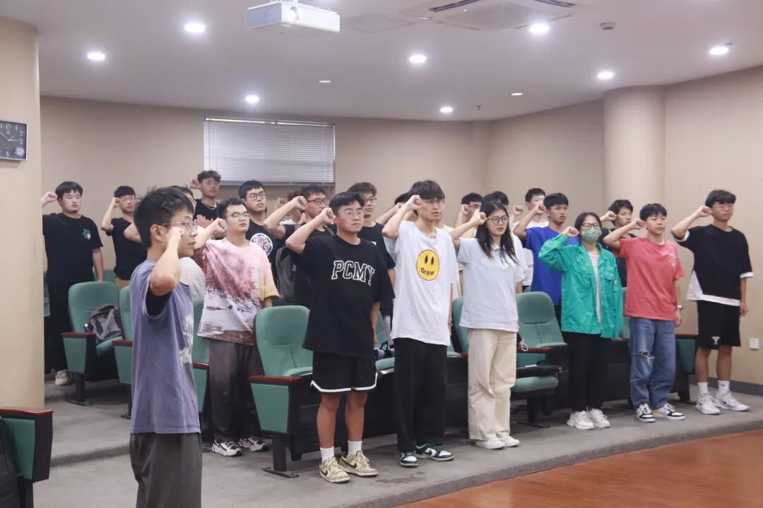在会议的最后,友嘉志愿者全体起立,一起握拳宣誓,每个志愿者都气势昂扬,斗志满满,期待着明天迎新志愿的开展以及新生们的到来。