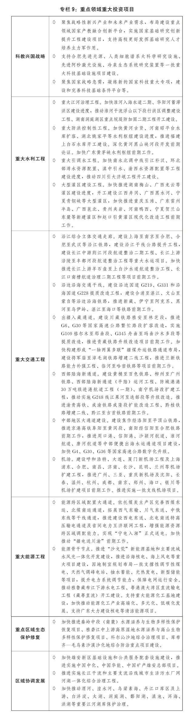 二是扩大有效益的投资。统筹传统和新型基础设施建设、传统和新兴产业发展、“投资于物”和“投资于人”,着力提高投资的经济、社会、生态等综合效益。2025年安排中央预算内投资7350亿元,比2024年多350亿元。扎实推进重大工程项目建设,推动“十四五”规划102项重大工程圆满收官,及早谋划“十五五”重大项目。常态化做好项目谋划储备,加强用地、用海、用能、环评等要素和融资保障,高质量推进项目前期工作和建设实施,尽快形成实物工作量。加快地方政府专项债券发行使用,优化完善专项债券管理机制,额度分配向项目准备充分、投资效率较高、资金使用效益好的地区倾斜,扩大用作项目资本金的领域、比例,实施好投向领域“负面清单”管理、下放项目审核权限等措施,在部分省市开展“自审自发”试点。建立政府投资支持基础性、公益性、长远性重大项目建设长效机制。深化投资审批制度改革,完善项目全周期监督管理机制。更大力度促进民间投资,从放宽准入、权益保护、要素协同、融资支持等方面进一步健全民营企业参与国家重大项目建设的长效机制,常态化向民间资本推介项目,在铁路、核电、水利、生态环保、仓储物流、新型基础设施、公共服务等领域推出一批吸引民间资本参与的重大项目,规范实施政府和社会资本合作(PPP)新机制,推动基础设施领域不动产投资信托基金(REITs)扩围扩容。