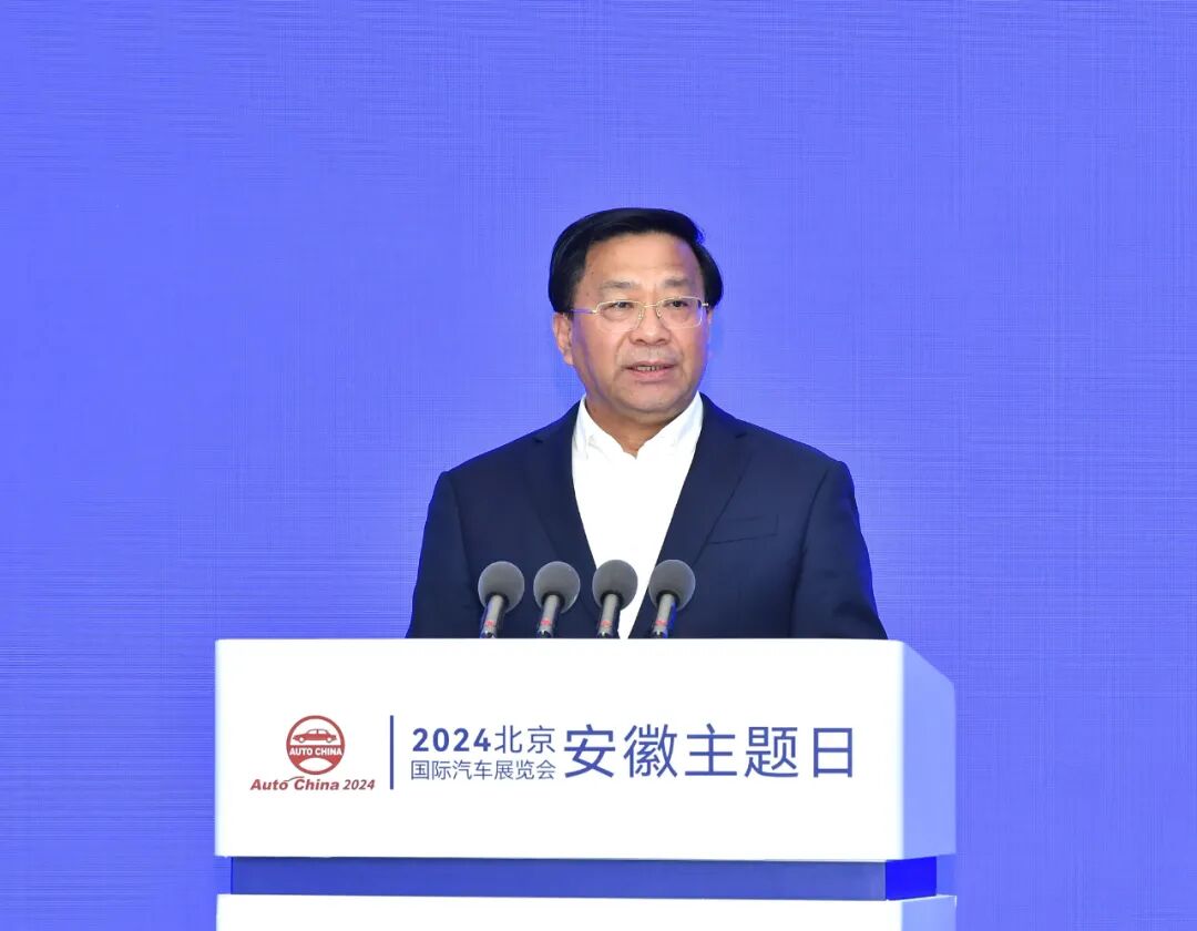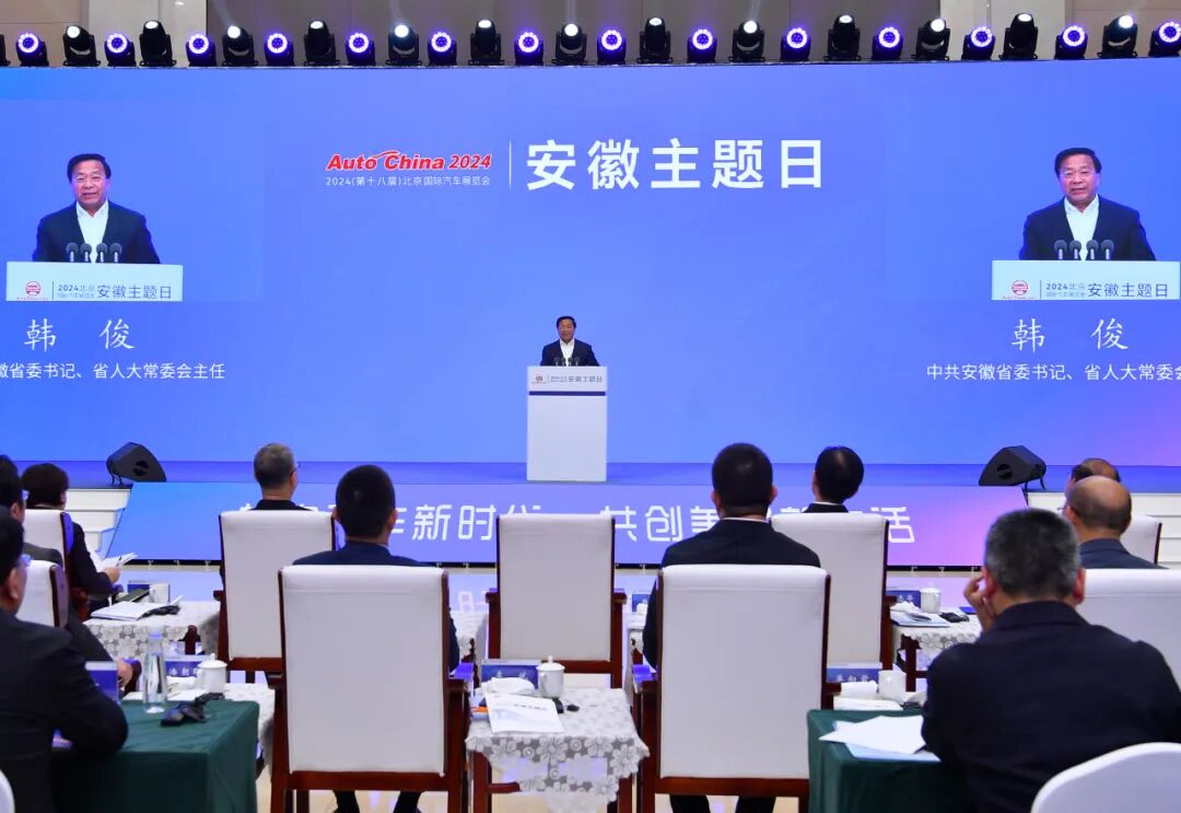 4月28日上午,2024北京国际汽车展览会安徽主题日活动在北京市中国国际展览中心隆重举办。省委书记韩俊出席并致辞。主题日活动上,中国工程院副院长、中国工程院院士钟志华,无线移动通信全国重点实验室主任、移动通信及车联网国家工程研究中心主任陈山枝分别演讲。比亚迪股份有限公司董事长兼总裁王传福,奇瑞控股集团董事长尹同跃,江淮汽车集团控股有限公司董事长项兴初,蔚来创始人、董事长、首席执行官李斌,重庆长安汽车股份有限公司总裁王俊,大众汽车(安徽)有限公司首席人力资源官邵剑,西班牙伊狄达汽车技术股份有限公司中国区董事、总经理亚历山大·卡塔拉先后推介发言。王传福等企业家表示,安徽营商环境好,发展潜力大,一大批高新技术和企业、人才聚集江淮大地,已成为投资兴业的沃土。特别是新能源汽车产业发展势头强劲,产业综合实力大幅跃升,产业链自主可控水平大幅提高,企业将不断加大在皖投资布局力度,全力推动合作项目落地,抢占新能源汽车发展制高点。韩俊在致辞时代表省委、省政府向出席活动的各位嘉宾表示欢迎,向长期以来给予安徽发展大力支持的各界朋友表示感谢。他说,当前,随着新一轮科技革命和产业变革的加速演进,全球汽车产业正面临前所未有的大变局,电动化、智能化、网联化、共享化成为不可逆转的大趋势。安徽认真学习贯彻习近平总书记关于发展新能源汽车产业的重要指示精神,以建设汽车强省为目标,推动整车、核心零部件、后市场三位一体全面发展,加快打造具有国际竞争力的新能源汽车产业集群,汽车“皖军”跑出了加速度,在全国乃至全球汽车产业版图中占有了重要的一席之地。韩俊指出,我们坚持全链条构建汽车产业生态,出台加快建设具有国际竞争力的新能源汽车产业集群指导意见,颁布全国首部省级层面新能源汽车产业专项立法,全方位强化人才、资本等全要素支持,培育了一批有较强竞争力的整车制造企业,发展了一批核心零部件企业,形成了越来越完善的汽车产业链、供应链。我们坚持科技创新赋能汽车制造,始终把科技创新能力建设放在首位,抓好关键核心技术攻关,组建全省汽车产业创新联盟,实施新能源汽车与智能网联汽车重大科技专项,强化研发、制造整体协同,在“三电”“三智”等领域取得一系列重要突破,“安徽车”与“安徽屏”“安徽芯”“安徽脑”融合赋能,为汽车产业插上了“科技的翅膀”。我们坚持以开放姿态拥抱新能源和智能网联汽车新时代,走出去、引进来,深度融入全国和全球汽车产业链,支持推动奇瑞汽车、江淮汽车、蔚来汽车等整车企业在全球布局,吸引比亚迪、大众安徽、福耀玻璃、佛瑞亚集团等一批重大项目落地实施。安徽汽车产业在高水平对外开放中进一步提速,产业链进一步夯实,集群化效应进一步彰显,综合竞争力进一步增强。韩俊表示,安徽是一个富有魅力、大有希望的地方,正处于厚积薄发、动能强劲、大有可为的上升期、关键期,正全力打造“三地一区”、加快建设“七个强省”。在安徽,只要企业有想法,我们就认真想办法,只要企业有需要,我们就全力服务好。希望各位嘉宾继续关心支持安徽,把更多资源导入安徽,把优质项目投向安徽,把先进技术带到安徽,与我们携手开创互利共赢的美好未来。司马红在致辞时指出,北京和安徽交流合作密切,新时代新征程上合作潜力更大、空间更广阔。北京坚决贯彻党中央决策部署,加强区域交流合作,把首都发展融入国家战略大局,大力加强“四个中心”功能建设,不断提高“四个服务”水平,坚持“五子”联动服务和融入新发展格局,新时代首都发展实现历史性跨越。希望两地在落实京津冀协同发展、长三角一体化发展等重大国家战略上加强联动,在打造世界一流的科学中心和创新高地上相互赋能,在培育新质生产力上协同发力,深化合作,推动京皖两地合作结出更加丰硕的成果。陈建安指出,安徽加快建设新能源汽车强省,成为全球汽车产业版图上的造车“新力量”。中国贸促会高度重视与安徽省的合作,将通过第二届中国国际供应链促进博览会等重要平台,共同为全球新能源汽车产业发展注入新动能、拓展新空间。徐念沙指出,安徽汽车产业发展势头迅猛,中国机械工业联合会将充分发挥智库研究咨询、标准体系构建、科技创新转化、质量品牌建设、数据统计分析、国际交流合作、人才教育培养等优势,携系统各有关单位一道,共同助力安徽汽车产业高质量发展。付炳锋指出,安徽省汽车产业综合实力大幅跃升,万亿级的汽车产业集群正加快形成。面向未来,新的产业生态和竞争格局将加速形成,中国汽车工业协会将一如既往支持行业高质量发展,支持安徽汽车产业高质量发展。钟志华在演讲中指出,汽车智能化技术飞速发展,技术路线多头并进,汽车转型升级呈现新功能、新架构、新能源、新材料、新结构、新工艺、新装备、新模式等“八新”内涵。安徽通过打造独特的汽车技术与产业环境和生态,已经实现了长足的发展,相信将会产生更多的惊喜。陈山枝指出,希望安徽打造“车路云”产业生态,创新车联网平台经济,培育具有国际竞争力的“智车制造”产业集群,做强做大产业链和创新链,推动智能网联汽车与车路云一体化发展。本次活动借助2024北京国际汽车展览会举办契机,以“拥