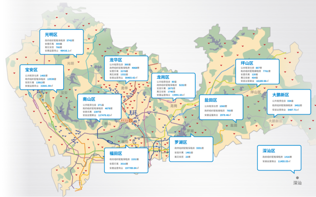 安居集团于2016年6月30日注册成立,是深圳市属国有独资企业和保障性住房专营机构,负责建设筹集全市的公共租赁住房、配售型保障性住房、保障性租赁住房等各类保障性住房。集团积极落实市委、市政府关于保障性住房“越多越好,越快越好”“跟着产业园区走、跟着大型机构走、跟着轨道交通走、跟着盘活资源走”决策部署,经过8年的快速、超常规发展,创新搭建了保障性住房建设筹集、运营管理、住房租赁、住房金融“四大平台”全链条一体化运作体系,并通过租售并举,滚动开发,探索了保障性住房“政策性功能性导向、企业化管理、市场化运作”的可持续发展“深圳模式”。截至目前,集团总资产1943亿元、净资产1046亿元,实现总投资1792亿元,累计开工114个项目(已竣工47个),总建筑面积1693万平方米,涉及房源13.4万套;累计建设筹集保障性住房28.8万套,供应15.3万套,约占全市1/3;累计服务约8800家企业、16万市民,发挥了全市保障性住房建设筹集主力军作用。
