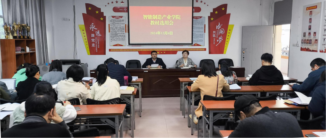 为进一步规范教材管理和选用工作,确保教材选用的规范性和科学性。2024年12月4日,智能制造产业学院在仙女湖校区B栋104会议室召开2025年春季教材选用会。此次会议由副院长彭秋梅主持,党总支书记范向红以及全体教师参加会议。
