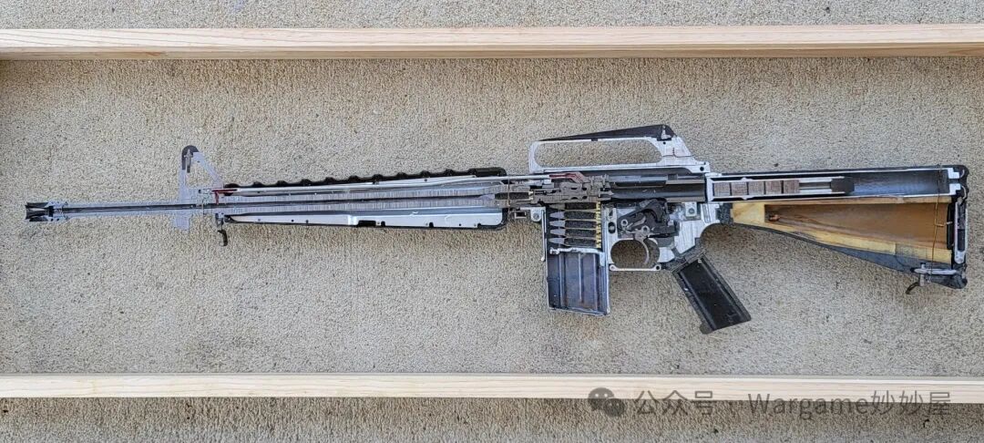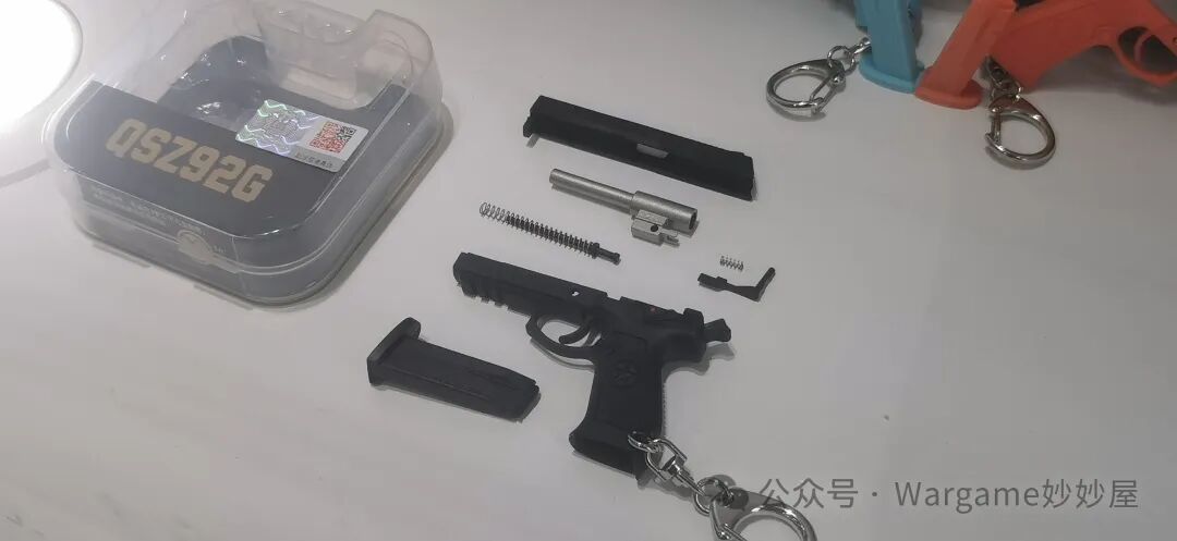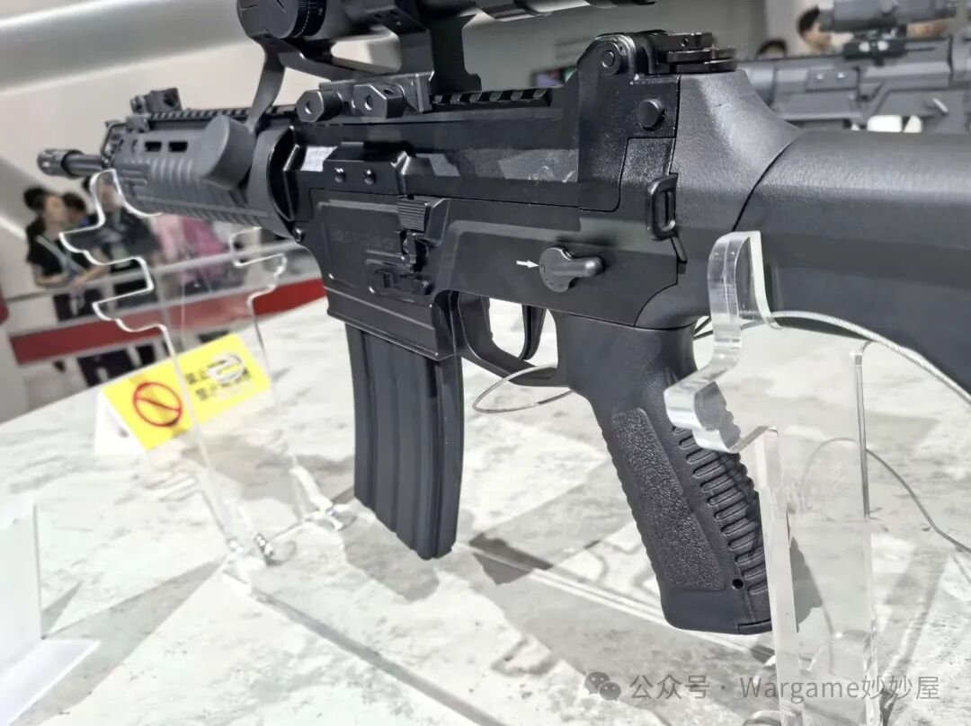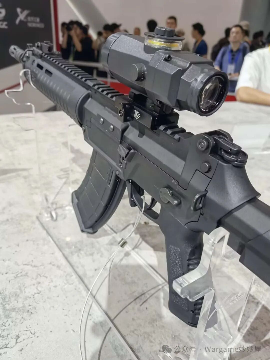 这个...还是算了...不像是以后还有机会出现的东西。E&L在兵器馆也占有一块摊位,有演示MR训练设备的房间(去年也有,不对公众开放体验),还有个不对外开放展示的GBB玩具射击位...然后就是一墙的玩具。这里面的器材包括191、95、92、运动气枪,主要分三类,漆弹、激光、MR,后两类又细分电动、气动版本,远看无明显差异。外观上,191气动版还是比较容易分辨的,电动版机匣厚度无明显差异,当时Airsoft思维入脑误以为E&L也整了个PTW...不过现在回想起来,这个电动应该真是电动,发个声音、射个激光什么的。话说建设搞了个纪念135周年的限量版的191半剖。据说是真铁切一半然后固定在画框上,类似浮雕,是不是真铁这点存疑,看有没有人买回来拆开就知道了(至少枪机框不是真的,拉开后内部是一根机片导杆,没有其他值得注意的东西,比如枪管节套,扳机组之类的,如果便宜点或许会有人买来抄数,然而就现场问出的离谱价格,本人倒希望是这种...国产XM157...右侧旋钮盖遗失,搞不好是在13日被人拿走了...场馆内向观众开放的一个射击项目,运动气枪激光模拟器。10发,步枪85环以上有奖励(手枪90),当天没有职业运动员装b的剧情发生,本人试了下,66环左右,玩具枪Gonsmif的水平只能这样了。有两枪抖了,现场可以选择依托射击,能打的更好,但没有奖励。一些玩具零件,墙上还有个不起眼的191 GBB机匣。航展的枪械其实只占很小的一部分,个人感觉本次的主题还是各种无人机、反无人机产品(真的太多了),只看轻武器显然是不值的,而且今年似乎也没什么相关民企参展,所以基本上就是这样。
