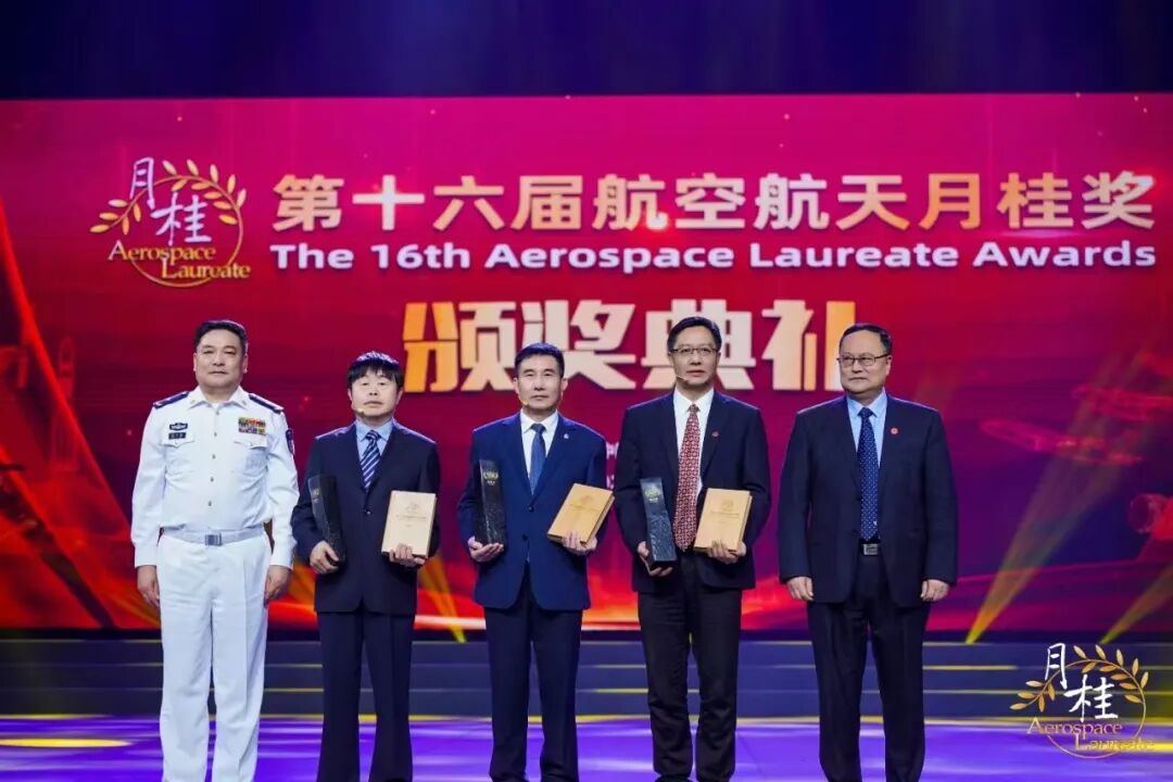 【又讯】11月11日晚,中国航展开幕前夕,第十六届航空航天月桂奖颁奖典礼在广东珠海举行。航天三院31所凌文辉(下图右二)荣获“航空航天月桂奖”殊荣。