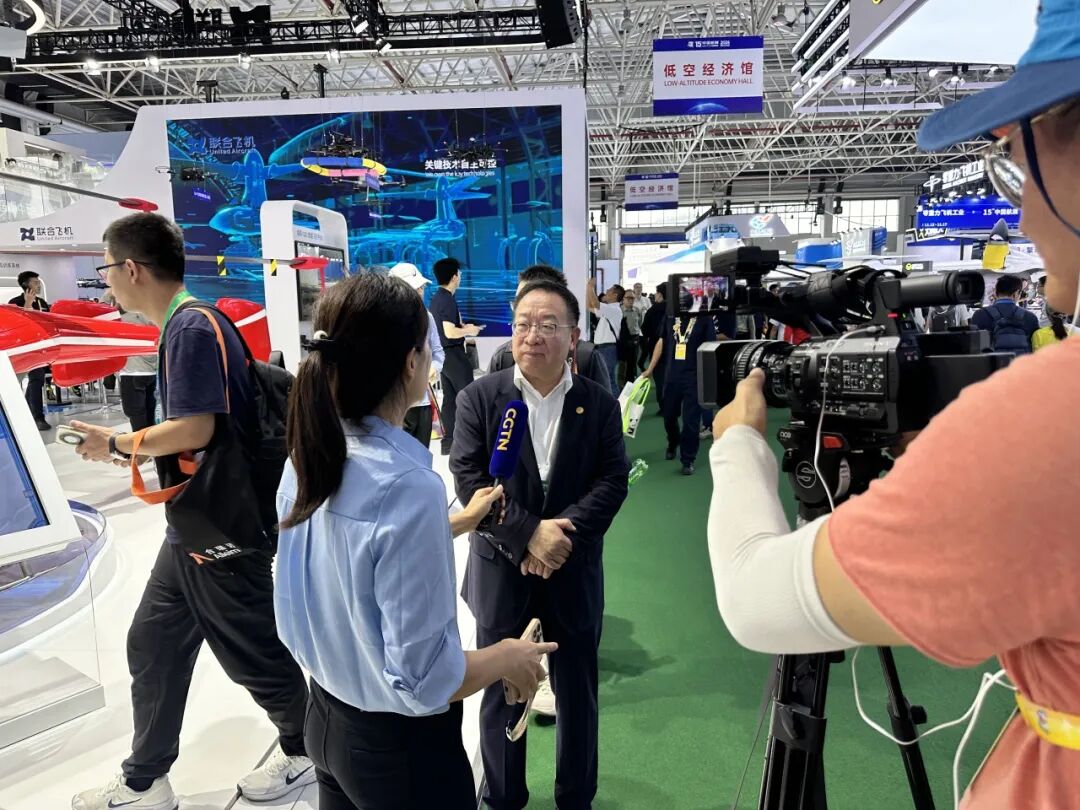 此外,在航展上,杨会长还接受了中国国际电视台CGTN、中国中央电视台CCTV财经频道等媒体的采访,重点阐述了低空经济的发展现状、前景、无人机应用领域、以及具体应用案例。