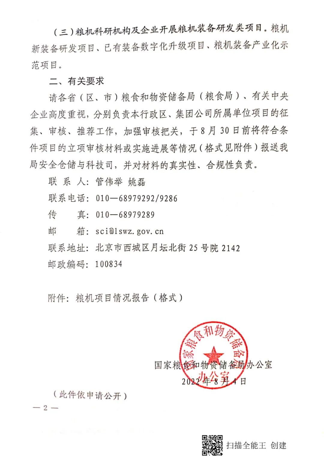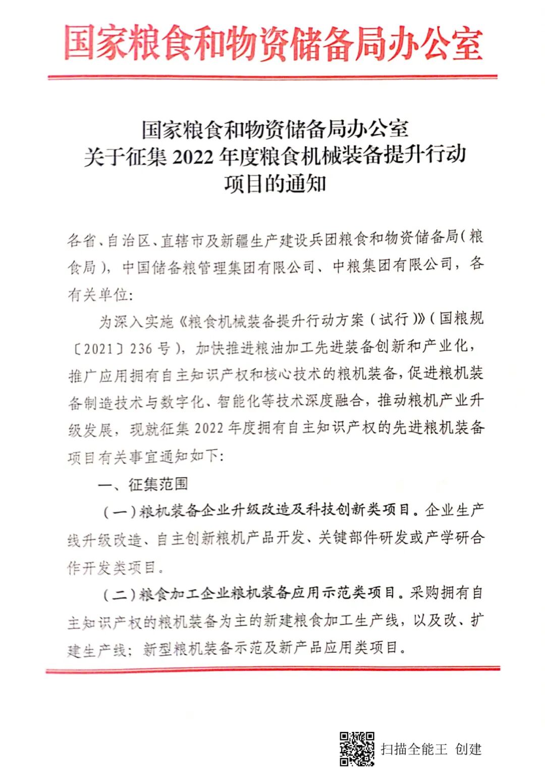 根据《国家粮食和物资储备局办公室关于征集2022年度粮食机械装备提升行动项目的通知》要求,现征集2022年度粮食机械装备提升行动项目,请符合申报条件的单位按通知要求准备申报材料,于2022年8月19日前报送至东湖高新区发展改革局(高新大道777号5号楼4018办公室),逾期不予受理。