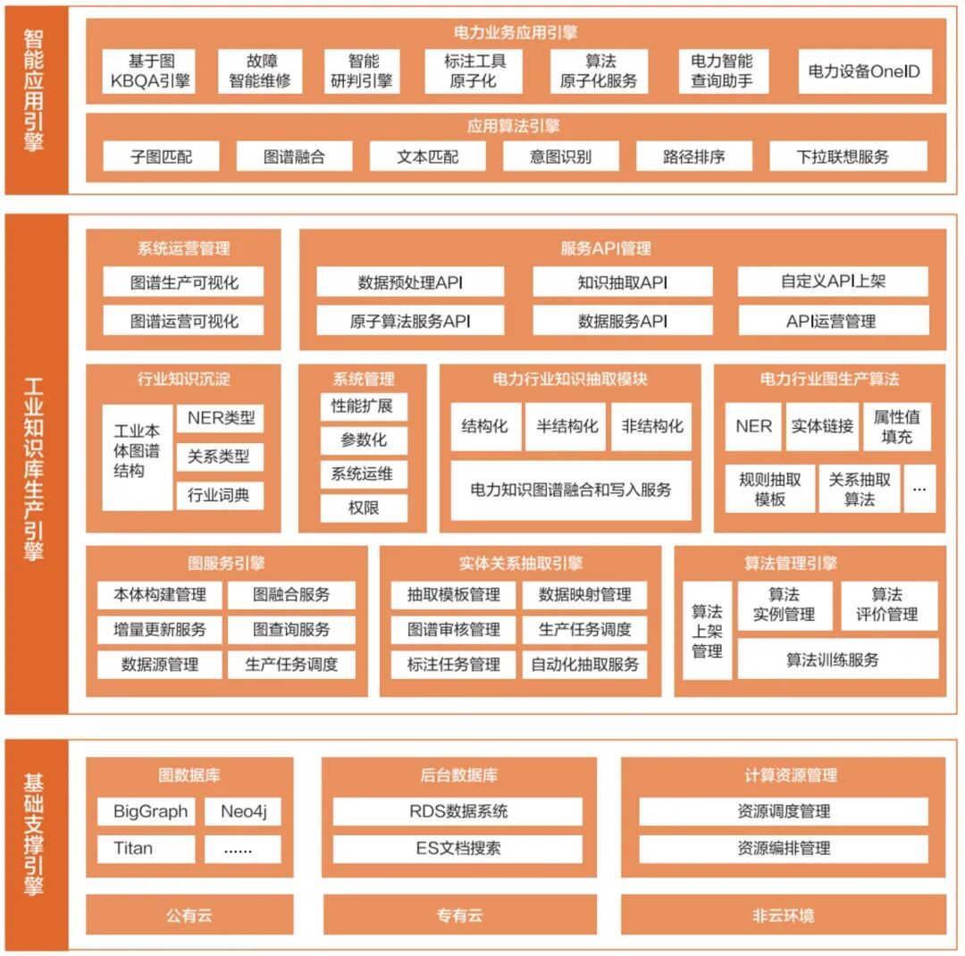 知识图谱生产是一整套系统,涉及结构化、半结构化和非结构化数据,需要大数据技术。半结构化和非结构化的知识经验、信息处理,则需要自然语言处理技术,处理为算法框架可以分析的数据。另外,知识图谱本体构建管理、知识图谱抽取前端交互、知识图谱查询和计算服务、知识图谱存储,后台的系统管理和调度运维服务组件,甚至包括部署环境等技术能力也是知识图谱构建的一部分。最终作为PaaS级产品,知识图谱会基于通用底座,结合商业系统定制开发适合不同企业的知识图谱平台,提供应用能力。
