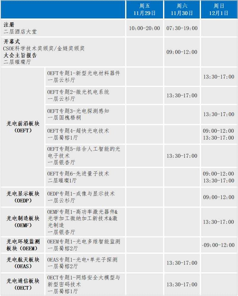 大会同期举办光电子领域展览,地点在大会同期酒店。通过展览活动直观展示本领域最新技术、产品和解决方案,为参会者提供深入了解行业最新成果的机会。光电子领域技术发展迅速,通过展览,企业可以通过展示他们的创新产品、前沿技术和解决方案,吸引潜在客户、合作伙伴和投资者,同时促进技术、市场和资本的深度对接。