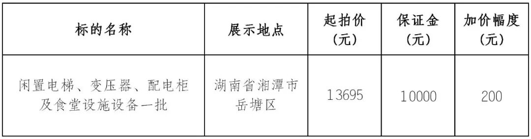 标的1:闲置电梯、变压器、配电柜及食堂设施设备一批