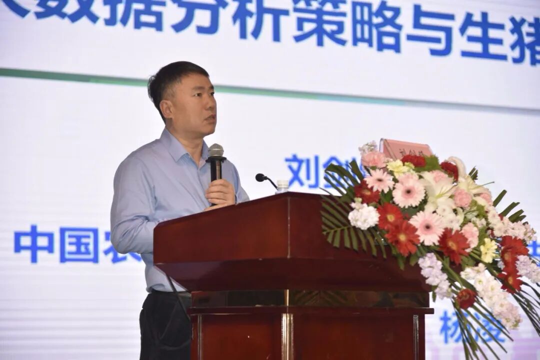 图为4月2日,在“生猪产业发展和猪病防控论坛”上,中国农业大学教授刘剑锋围绕“育种大数据分策略与生猪遗传改良”主题进行主旨分享。