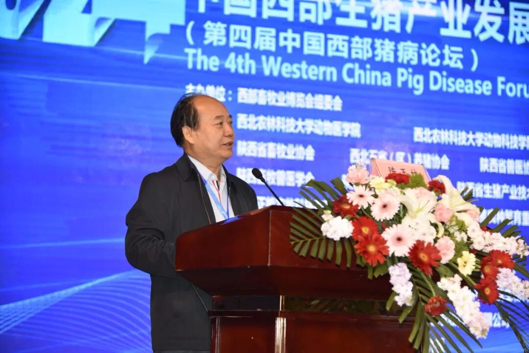 图为4月2日,在杨凌举办的“生猪产业发展和猪病防控论坛”上,中国工程院院士、河南农业大学校长张改平围绕“超级疫苗—理论假说和研究实践”主题进行主旨分享。