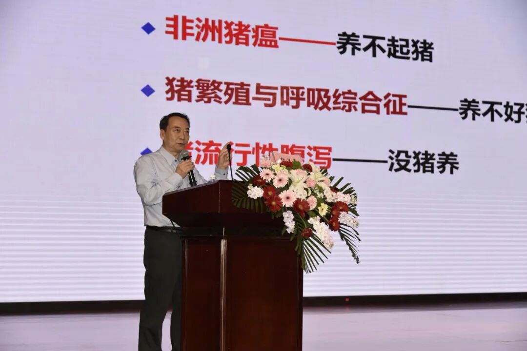 图为4月2日,在“生猪产业发展和猪病防控论坛”上,中国农业大学教授杨汉春围绕“猪繁殖与呼吸综合症流行特点与防控策略”主题进行主旨分享。