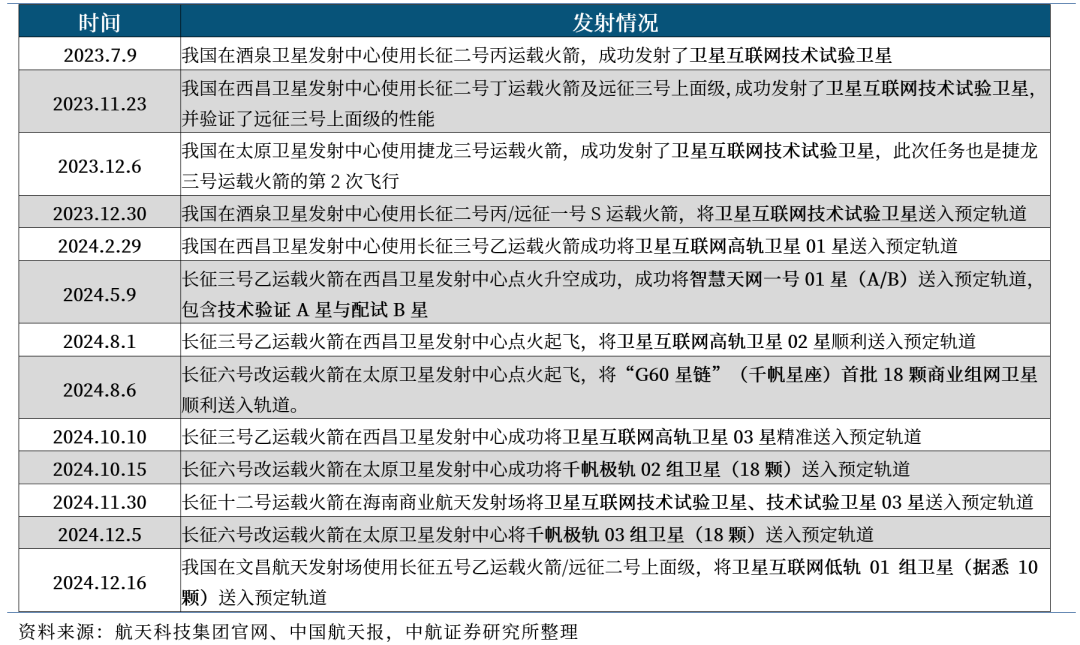 回顾2024年,中国航天发射次数虽不及预期,但各类低轨互联网星座已进入全面建设阶段,商业航天发射场顺利完成首秀,各类新型号火箭研制进程加速、摩拳擦掌等待升空。我们判断,2025年我国航天发射次数有望再上新台阶。