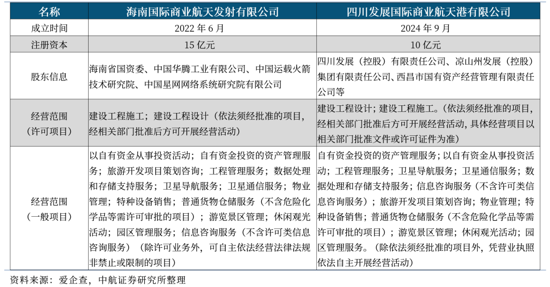 表9 海南国际商业航天发射有限公司和四川发展国际商业航天港有限公司的相关信息对比