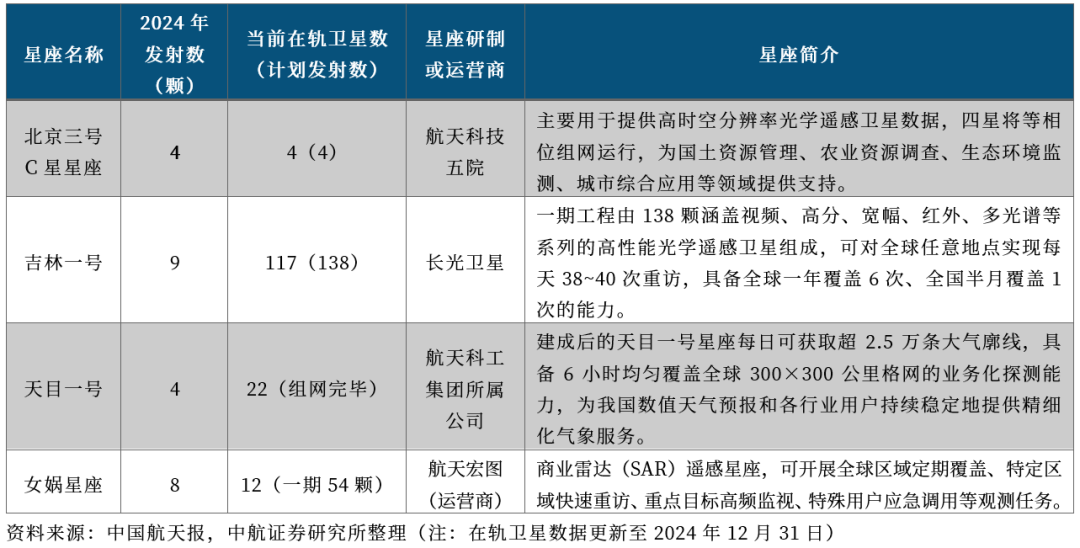 2024年,我国各类卫星(星座)建设情况,具体如下: