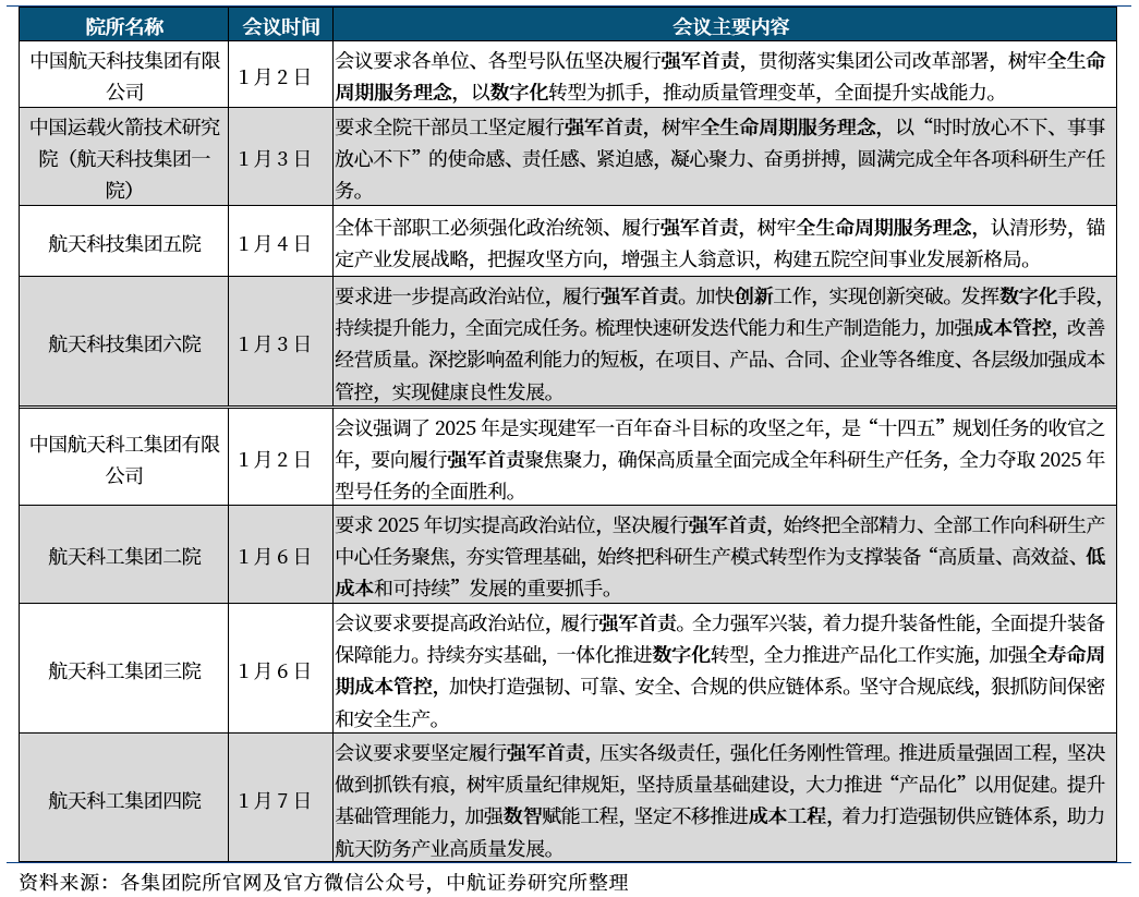表12 近期各大航天央企及其所属单位召开2025年型号工作会议