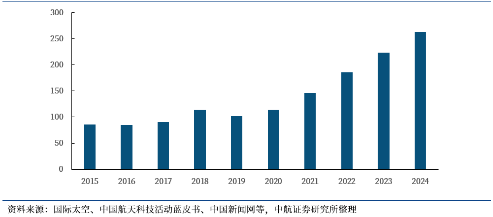 2024年全球航天发射次数再创新高,近十年发射次数整体保持上升趋势。