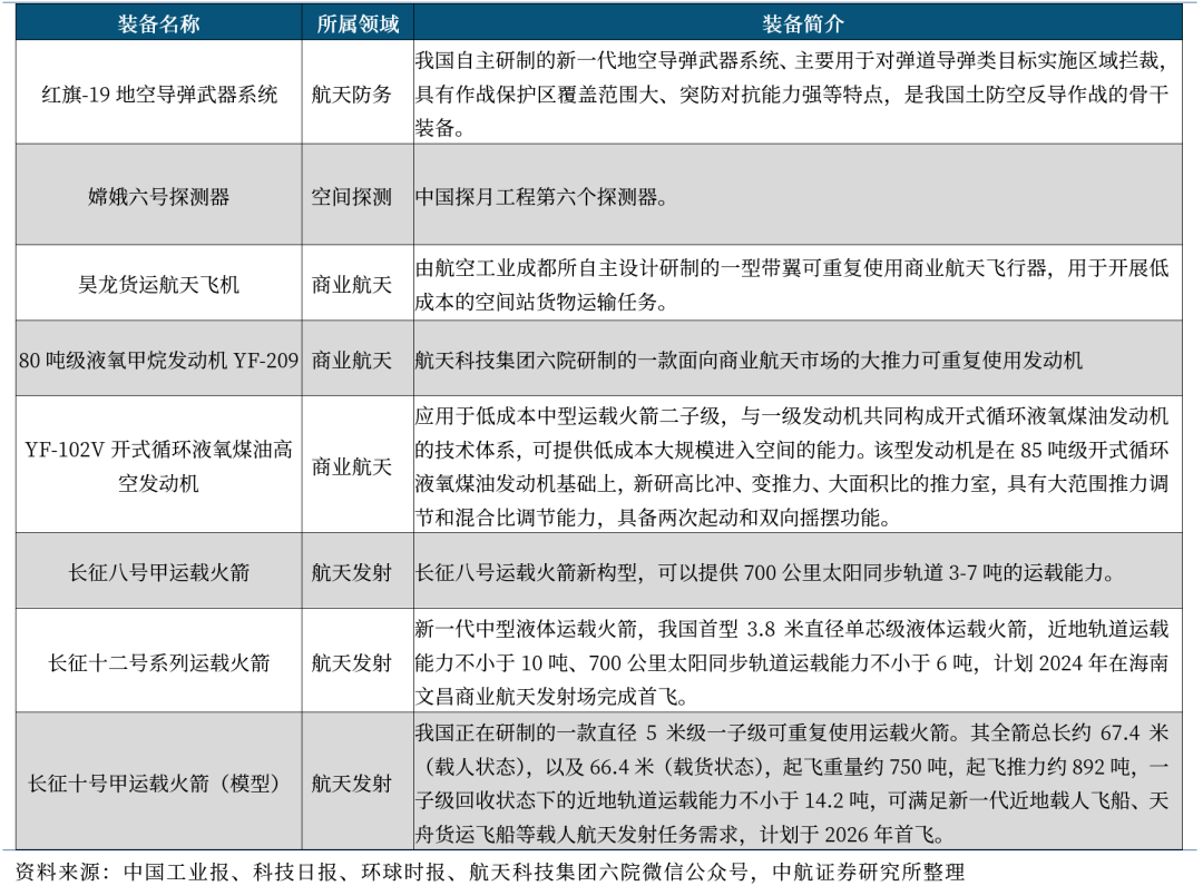 以红旗-19地空导弹武器系统、昊龙货运航天飞机为代表的多款航天装备也在本次航展上首次公开亮相。具体装备及其信息如下表所示。