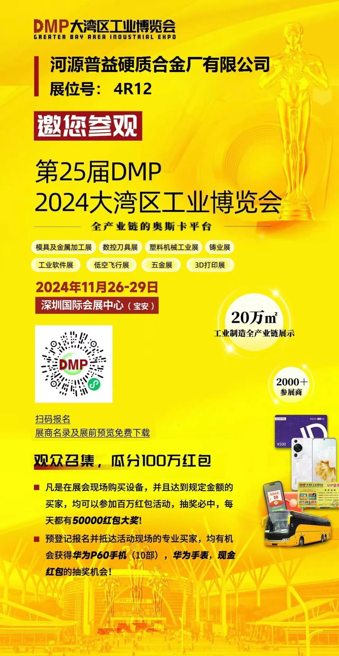 2024DMP大湾区工业博览会暨第25届国际数控刀具展、模具及金属加工展、塑料机械工业展,铸业展,低空飞行展、工业软件展、人工智能展(以下简称“DMP工博会”),于11月26-29日在深圳国际会展中心(宝安)正式拉开帷幕!展会规模20万平方米,协同2000+家头部制造企业将悉数亮相,展示产品涵盖:数控机床、数控刀具、模具测量、工业机器人、压铸铸造、注塑加工、3D打印、五金配件等,还有40+场前瞻会议论坛赋能制造业年度大秀!
