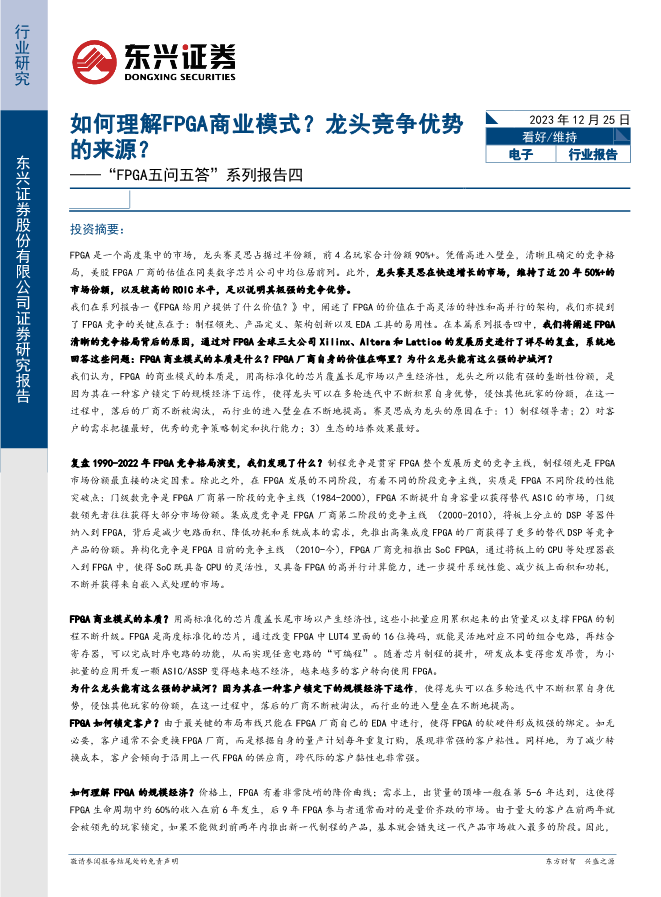 电子:“FPGA五问五答”系列报告四-如何理解FPGA商业模式?龙头竞争优势的来源?-20231225-东兴证券-24页.pdf