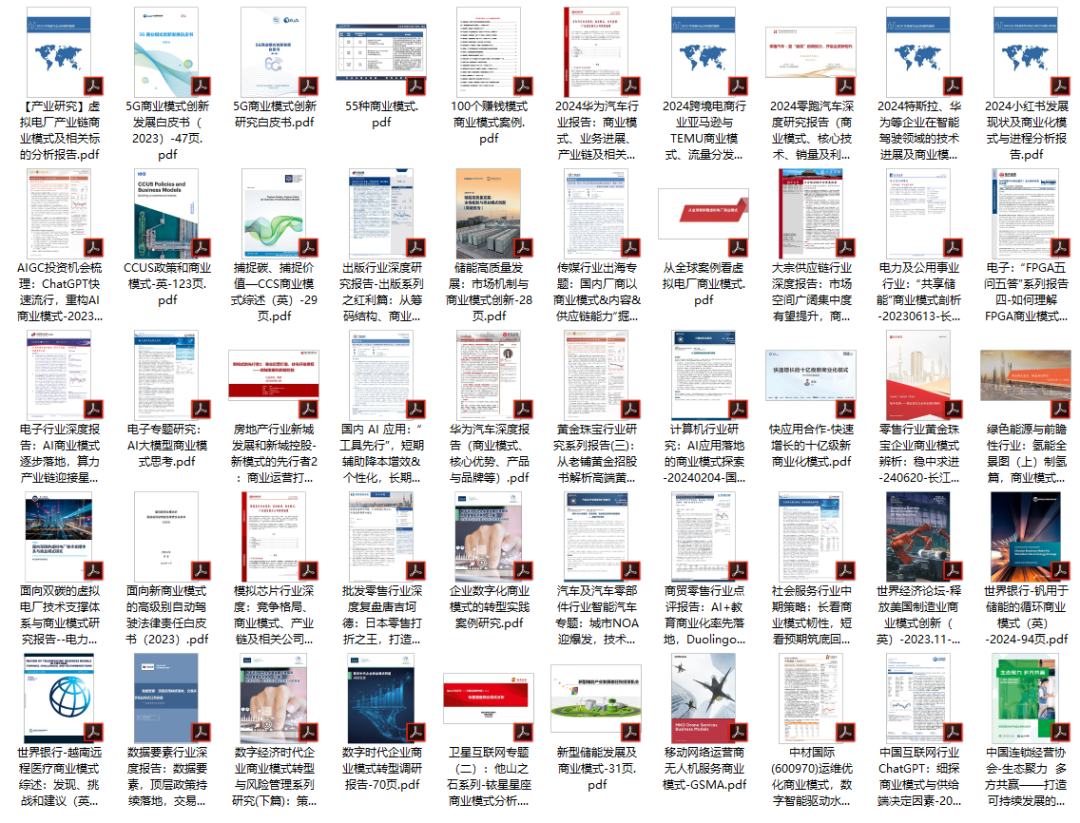 为了让大家更好的了解各行业商业模式创新及新兴商业模式发展趋势,我们整理了相关研究报告形成合集,供大家参考学习使用,希望能帮到大家。
