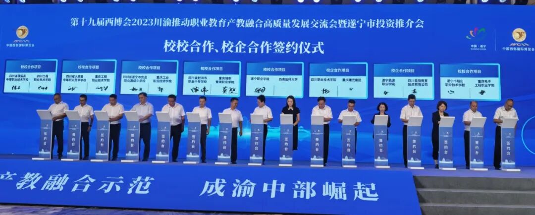 第十九届西博会2023川渝推动职业教育产教融合高质量发展交流会暨遂宁市投资推介会校校合作、校企合作签约仪式