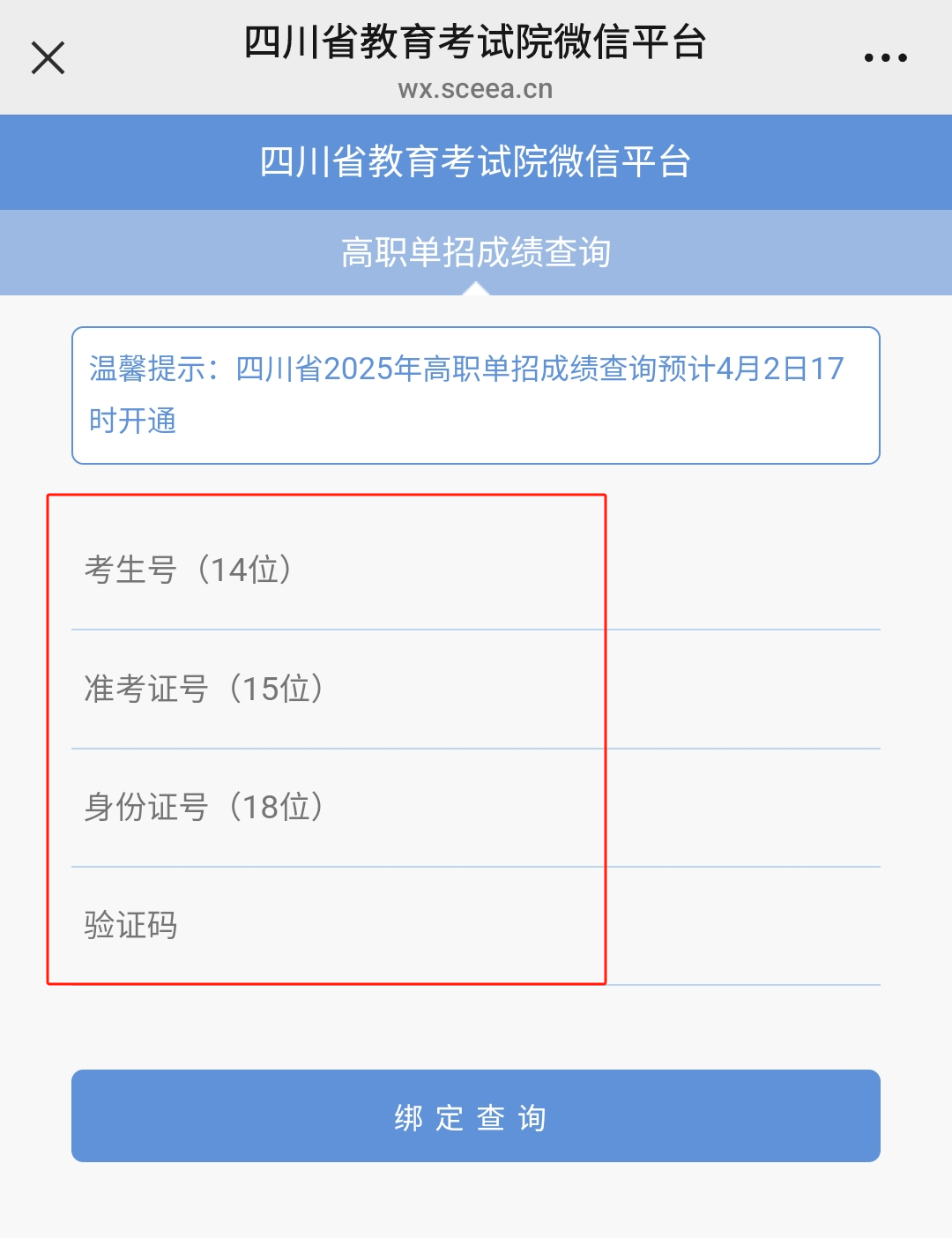 3、按照提示输入考生报名号、准考证号、身份证号即可绑定!就能第一时间通过本公众号查询到自己的高职单招成绩。
