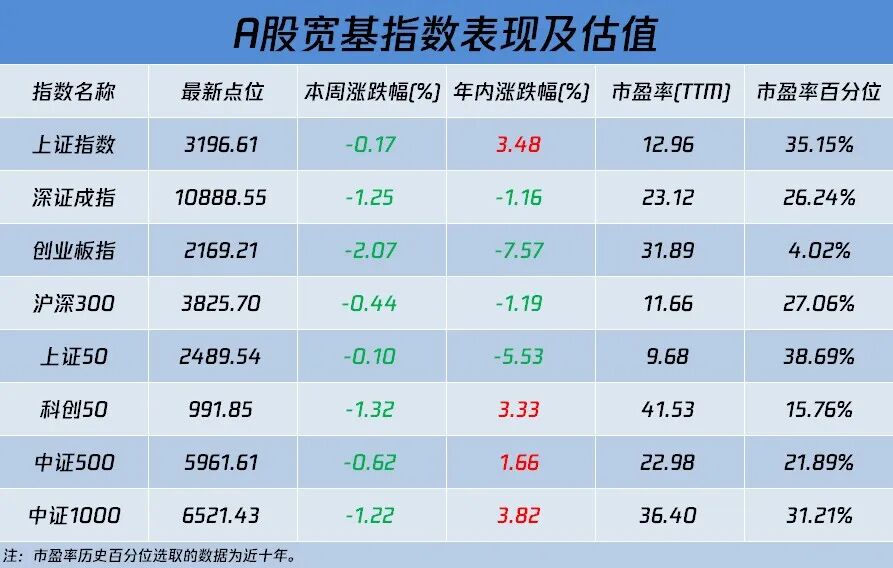 上周主要宽基指数集体收跌,创业板指跌幅达2%。两市每日成交额持续缩量,仅周一超过1万亿元,周二成交额为9300亿元;此外,周三、周四、周五的成交额均在8000亿级别。光大证券认为,经济与盈利数据同比回升将是市场上行的核心动力,当前整体经济与盈利仍然处于修复初期,尤其是盈利数据的改善才刚刚开始。未来有望看到经济与盈利的进一步好转,在经历了前期由于业绩压力、政策预期及交易拥挤带来的阶段性调整后,市场或将重回上行轨道。