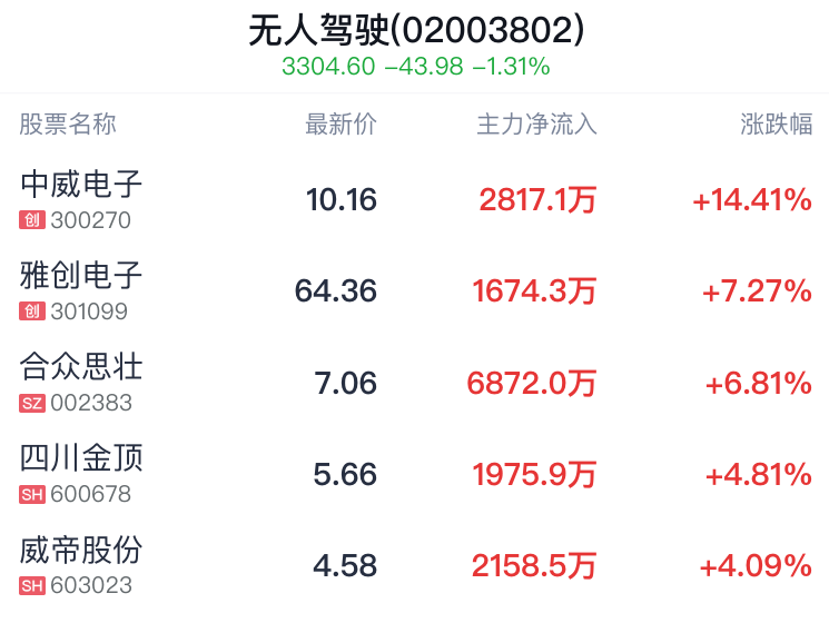以申万一级行业为准,汽车、石油石化等板块领涨。其中,自动驾驶为汽车赛道最强分支,浙江世宝一度走出5连板。马斯克在2023世界人工智能大会上表示,随着人工智能技术的快速发展,预计大约在今年年末,便有望实现全面自动驾驶。机构普遍认为,当前各地智能驾驶相关政策逐步落地,年内L3级别智能驾驶有望取得突破。