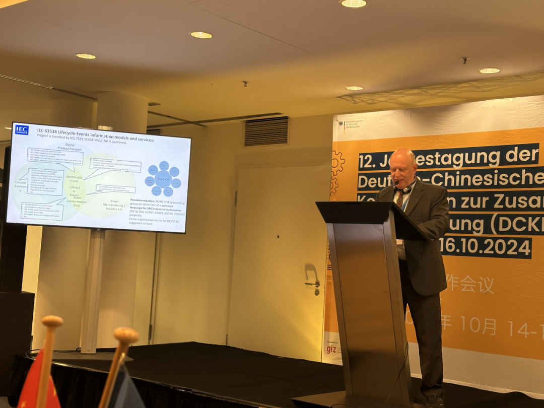 会议讨论环节,中方与德方专家就2024年全年的工作内容进行了回顾,本年度功能安全、状态监测与预测性维护两个工作组通过线上会议的方式开展了密切的沟通,开展了“数字化功能安全生命周期”的研究,并就预测性维护在智能制造场景下应用案例进行了分析,两个工作组还开展了协同工作,探讨了预测性维护与功能安全之间的结合点。通过本年度十余次会议的研讨,双方专家进一步建立了中德双方在功能安全和预测性维护方面的标准化共识,为后续将工作组的研究内容向国际标准化组织进行推进形成了基础。经过会议探讨,仪综所与德方专家就建立新的任务组“Common Automation Language”达成一致,支持自动化产品数据采集和交互,研讨工业数据空间和电子产品护照等中德重点关注议题。该提议由西门子公司的Matthias Gommel先生在会议期间正式提出,并建议由来自IEC/TC65(国际电工委员会/工业过程测量控制和自动化技术委员会)的中德专家负责任务组相关工作。