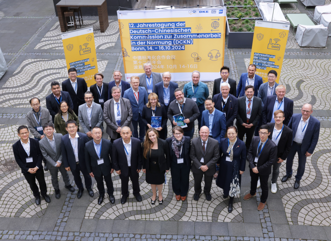近日,第十五次中德工业4.0/智能制造标准化工作组全会在德国波恩召开。本次会议由国家智能制造标准化总体组和德国工业4.0标准化委员会共同主办。国家市场监督管理总局标准技术管理司交通能源与资源环境处处长王宇、工业和信息化部装备工业一司智能制造处处长赵奉杰(线上)、德国联邦经济和气候保护部数字化处副处长妮娜斯托克、德国工业4.0标准化委员会技术负责人马文博尔、中国电子技术标准化研究院物联网研究中心副主任王文峰出席会议并致辞。此次会议由妮娜斯托克副处长和王宇处长共同主持。
