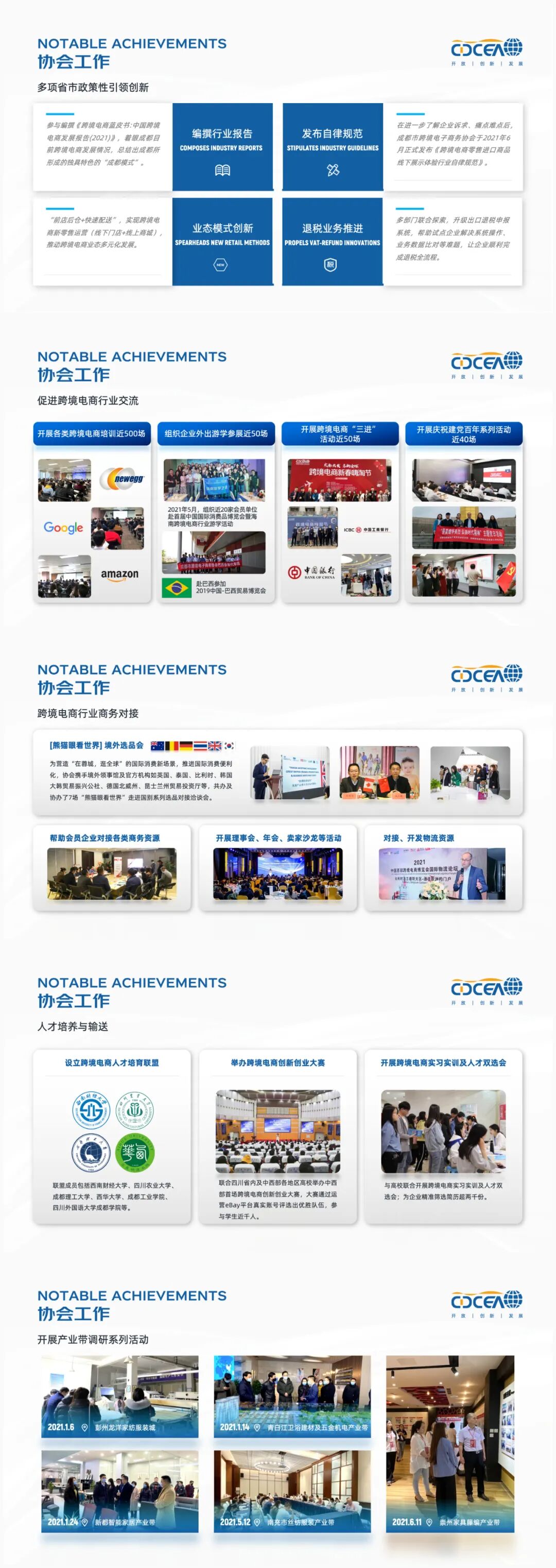120场+跨境电商培训、10余次外出游学参会参展、10场+跨境进口精品展系列活动、10场+走进国别系列-选品洽谈会、20场+产业带系列调研活动、首届西部跨境电商创新创业大赛、首届中国西部跨境电商博览会……成都市跨境电子商务协会2021年硕果累累,我们在实践中不断积累,在每一次新的尝试中不断总结经验,只为下一次更精彩地呈现!