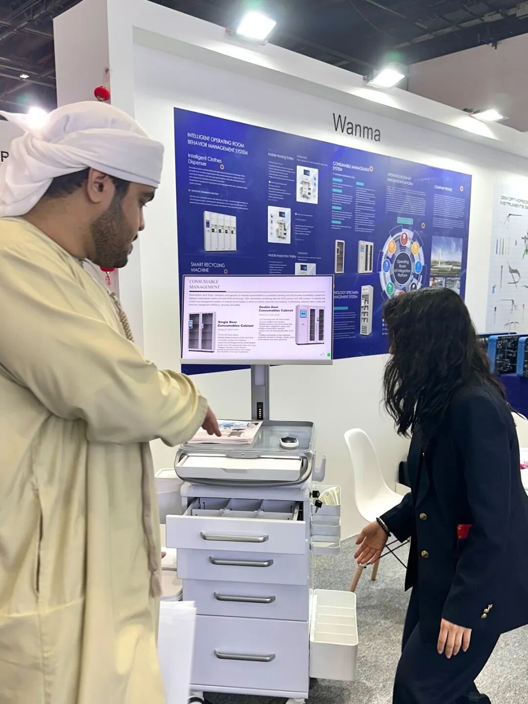 此次参展,万马智慧医疗展示了其在智慧医疗领域的深厚积累。携智能医生车、护理车等一系列产品精彩亮相,展现了智慧病区,智慧手术室行为管理,智慧耗材管理的解决方案。展位现场人气火爆,吸引了众多国外专家与客户前来交流洽谈。