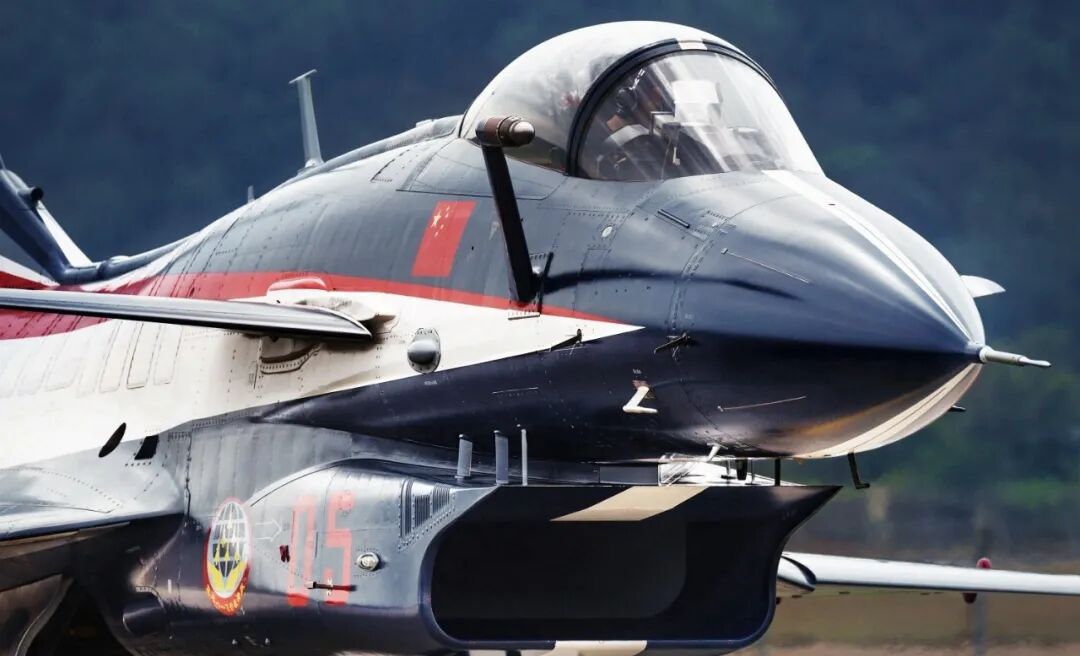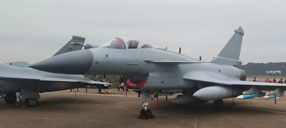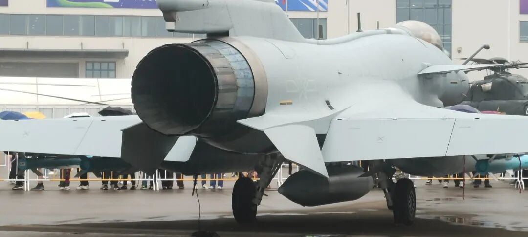 展示的战机显得特别新像刚下生产线,工艺水平之高令人印象深刻。这种精湛的制造工艺体现在机身的外观严丝合缝几乎没有凸起,更反映了中国航空工业在材料应用和制造技术上的进步。单纯作为展示而言,已经是一件令人赞叹的工艺品。