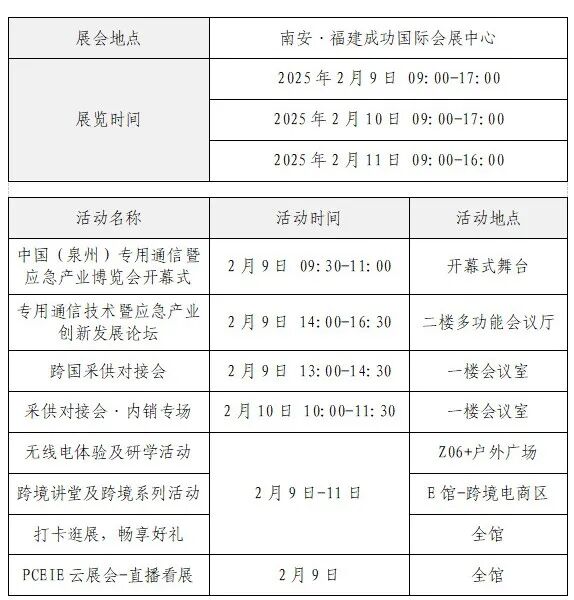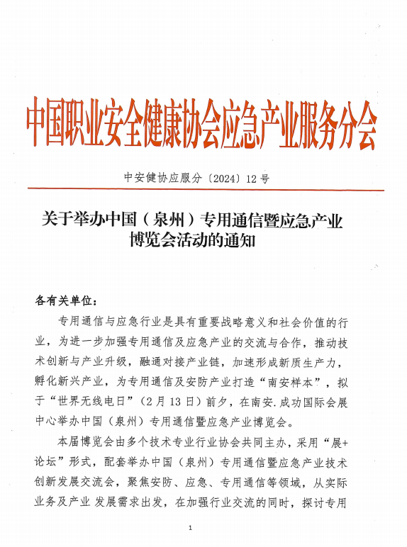 为进一步加强专用通信及应急产业的交流与合作,推动技术创新与产业升级,融通对接产业链,加速形成新质生产力,孵化新兴产业,为专用通信及安防产业打造“南安样本”,拟于“世界无线电日“(2月13日)前夕,在南安市福建成功国际会展中心举办“中国(泉州)专用通信暨应急产业博览会”。