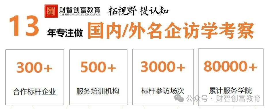 财智创富教育学院是国内专注从事标杆企业访学考察和企业培训服务机构,创办13年秉承“拓视野提认知”为教育理念,财智创富教育正通过不懈努力和实践创新为客户创造越来越多价值。